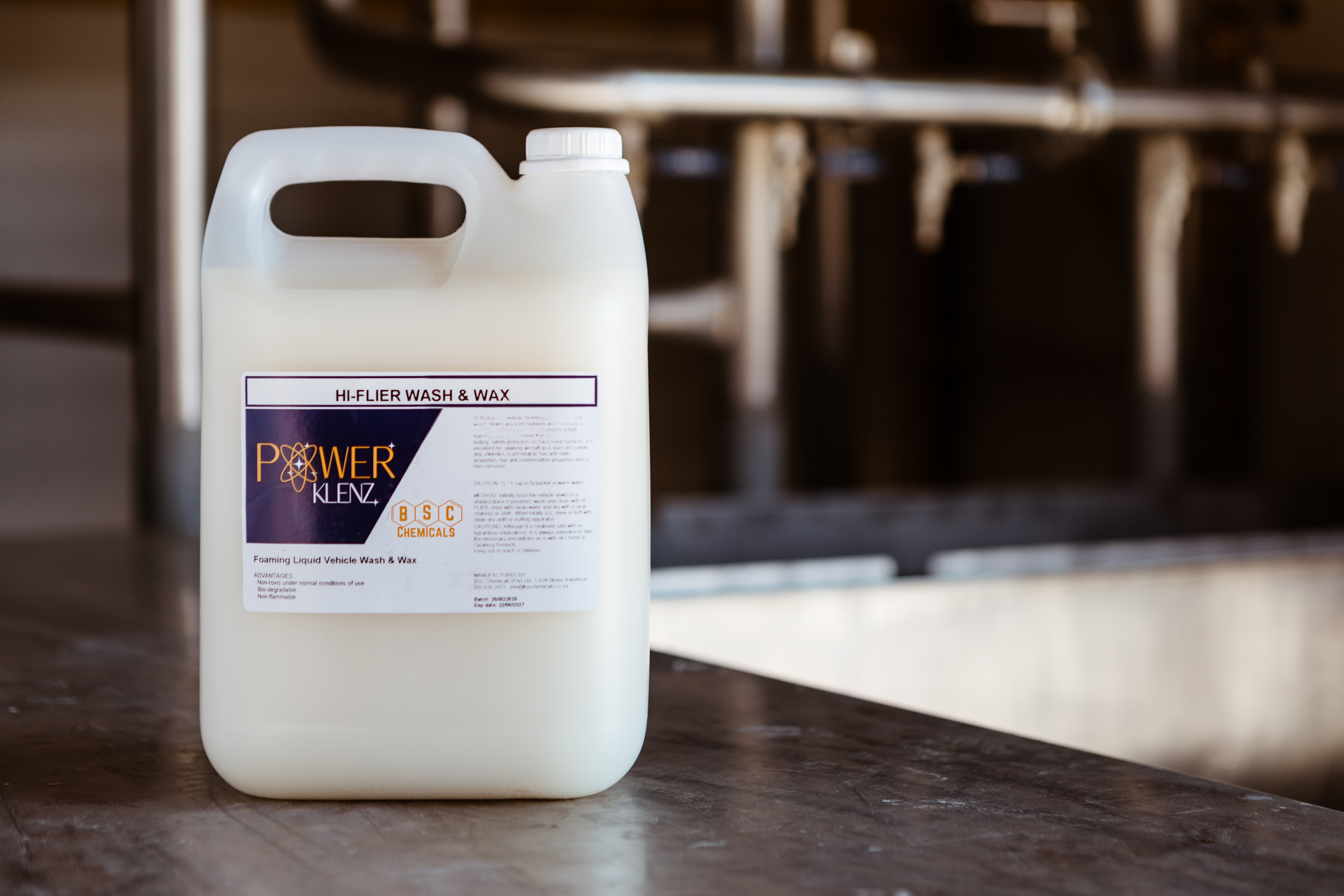 HI-FLIER is a vehicle cleaning liquid compound which cleans and then replaces wax removed with a new hard buffable wax. This product is a high foaming detergent cleaner that leaves a hard long-lasting, safety protection on hard metal surfaces. It is excellent for cleaning aircraft as it does not contain any chlorides, is pH neutral, has anti-static properties, has anti-condensation properties and is non-corrosive.